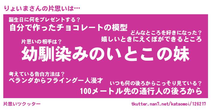 | ヘコむあだ名 | 『りょもー』『牛乳』『りょっぺ』 |