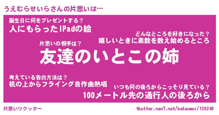 | 肩書あだ名 | 『うえむらせいら社長令嬢』 |