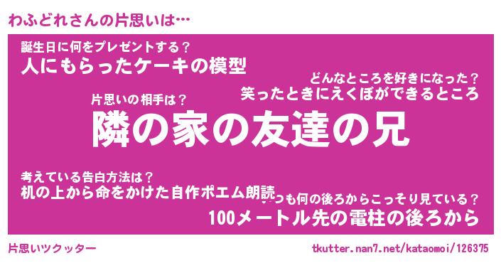 | ヘコむあだ名 | 『わふっふぃ~』『つくし』『わふを』 |