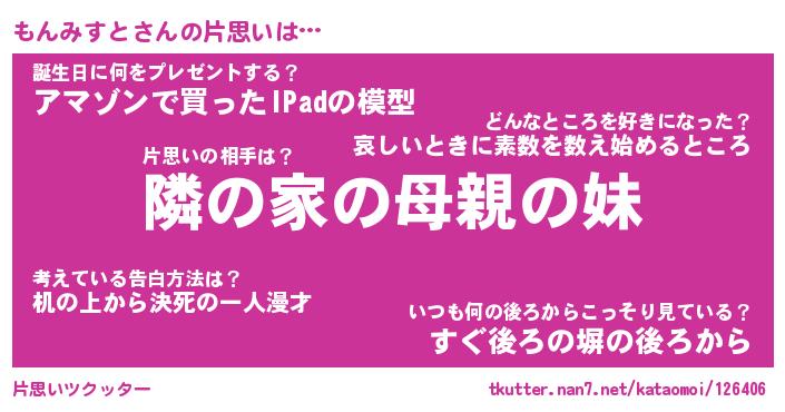 | 胡散臭い通販商品みたいなあだ名 | 『必ず成功するブレスレット…その名も「もんみすと」』 |