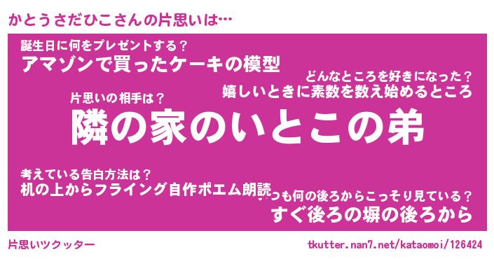 | ヘコむあだ名 | 『かともー』『なまこ酢』『かと太郎』 |