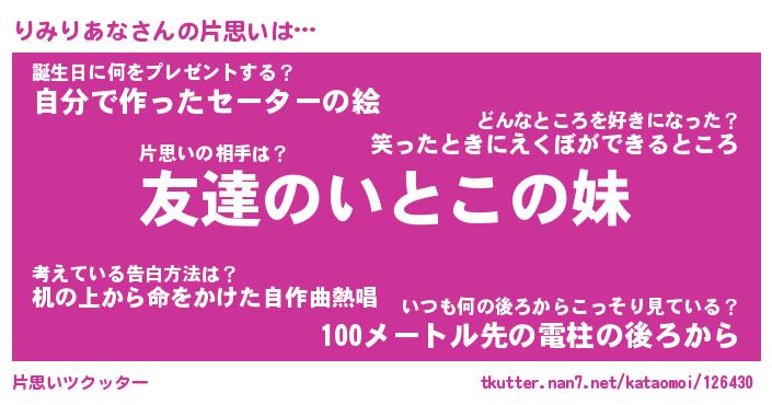 | ヘコむあだ名 | 『りみもー』『豆乳』『りみお』 |