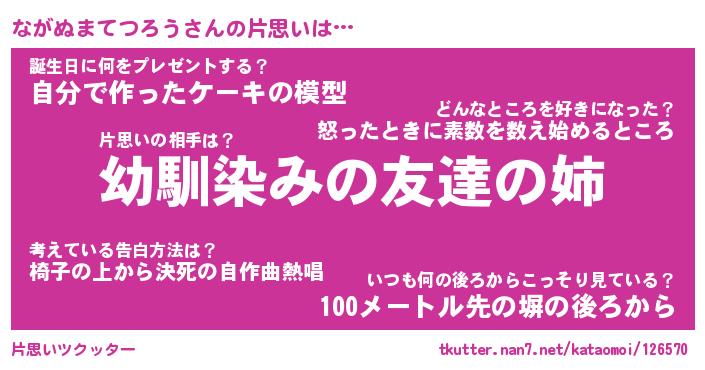 | 男性向けラノベタイトル風あだ名 | 『ながぬまてつろうの憂鬱』 |