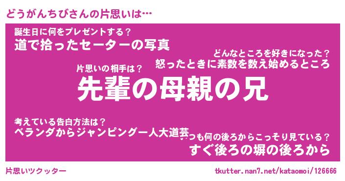 | 胡散臭い通販商品みたいなあだ名 | 『モテモテ間違いなしブレスレット…その名も「どうがんちび」』 |