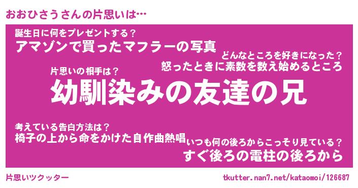 | 男性向けラノベタイトル風あだ名 | 『おおひさうの憂鬱』 |
