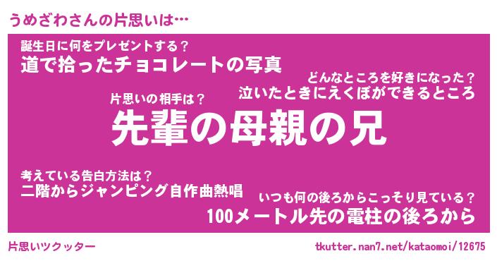 | ファンタジー風あだ名 | 『ウメフェル』『エターナルウメザワー』 |