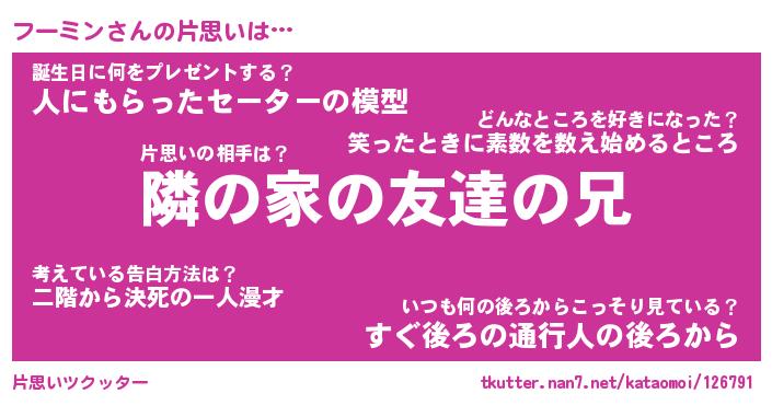 | 男性向けラノベタイトル風あだ名 | 『フーミンの憂鬱』 |