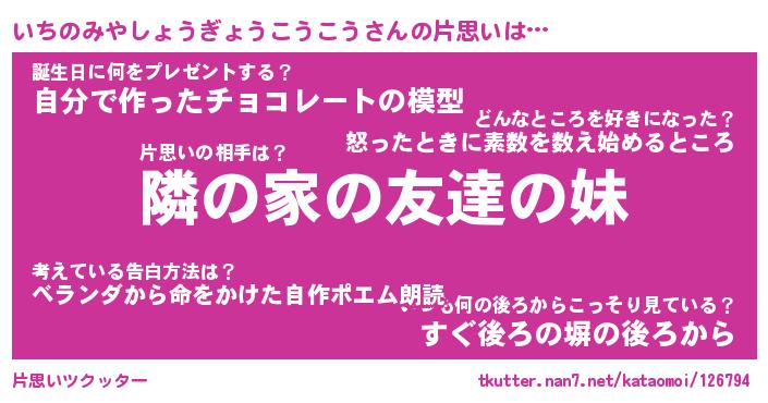 | 胡散臭い通販商品みたいなあだ名 | 『モテモテ間違いなし霊験あらたかなお札…その名も「いちのみやしょうぎょうこうこう」』 |