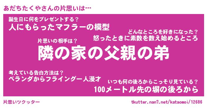 | 胡散臭い通販商品みたいなあだ名 | 『モテモテ間違いなしブレスレット…その名も「あだちたくや」』 |