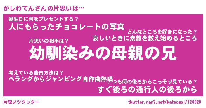 | 男性向けラノベタイトル風あだ名 | 『かしわてんの憂鬱』 |