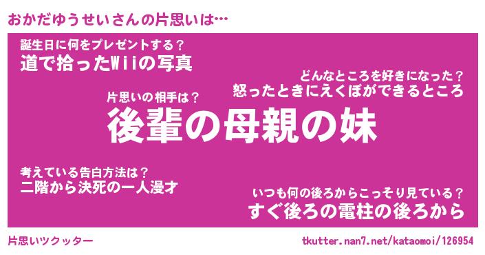 | 胡散臭い通販商品みたいなあだ名 | 『億万長者になれるブレスレット…その名も「おかだゆうせい」』 |