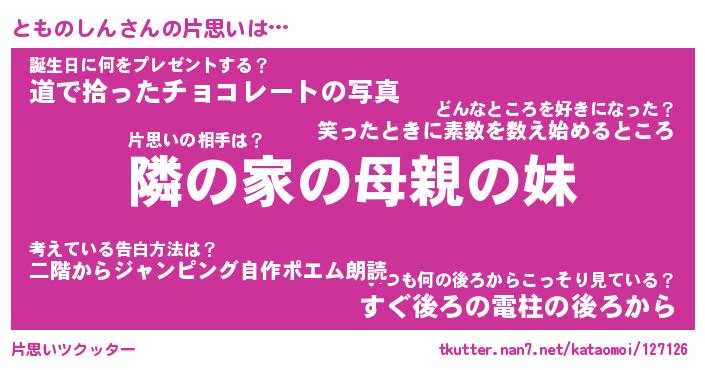 | 男性向けラノベタイトル風あだ名 | 『とものしんの憂鬱』 |