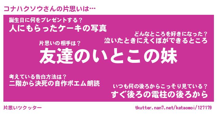 | ポケモン風あだ名 | 『コナチュウ』『コナハダネ』 |