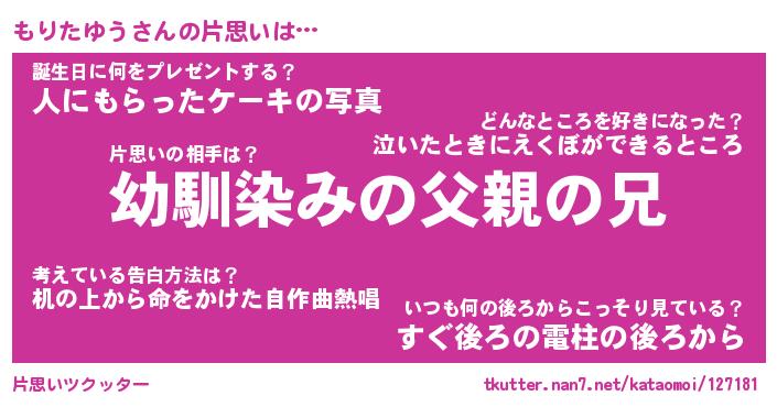 | ヘコむあだ名 | 『もりふぇ~』『つくし』『もり太郎』 |