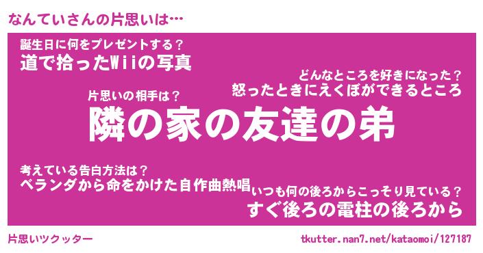 | ヘコむあだ名 | 『なんっふぃ~』『牛乳』『なんっぺ』 |