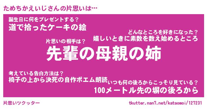 | 男性向けラノベタイトル風あだ名 | 『ためちかえいじの憂鬱』 |