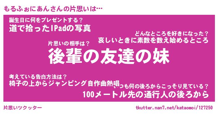 | ヘコむあだ名 | 『もるっふぃ~』『酢こんぶ』 |