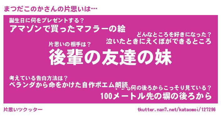 | 胡散臭い通販商品みたいなあだ名 | 『億万長者になれる霊験あらたかなお札…その名も「まつだこのか」』 |