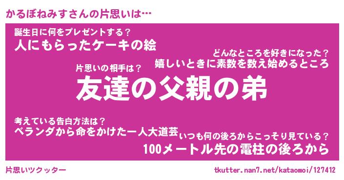 | 肩書あだ名 | 『かるぼねみすCEO』『かるぼねみす団長』 |