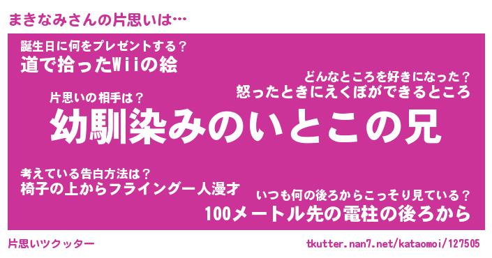| ヒーロー風カッコイイあだ名 | 『スーパーマキナミ』『暗黒騎士マキ』 |