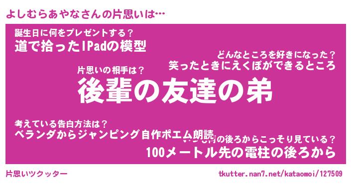 | 胡散臭い通販商品みたいなあだ名 | 『モテモテ間違いなし霊験あらたかなお札…その名も「よしむらあやな」』 |