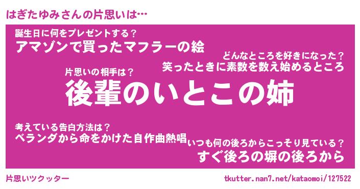 | 伝説のあだ名 | 『封印されしスナイパーはぎたゆみ』 |