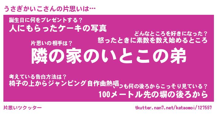 | 伝説のあだ名 | 『伝説のスナイパーうさぎかいこ』 |