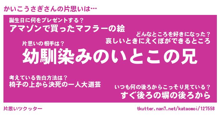 | 胡散臭い通販商品みたいなあだ名 | 『必ず成功する水晶球…その名も「かいこうさぎ」』 |
