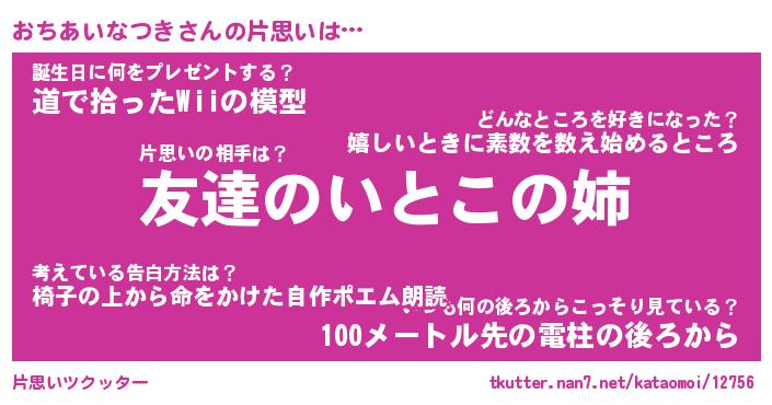 | 胡散臭い通販商品みたいなあだ名 | 『億万長者になれる霊験あらたかなお札…その名も「おちあいなつき」』 |