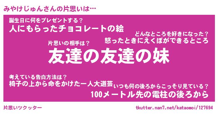 | ポケモン風あだ名 | 『ミヤチュウ』『ミヤケダネ』 |