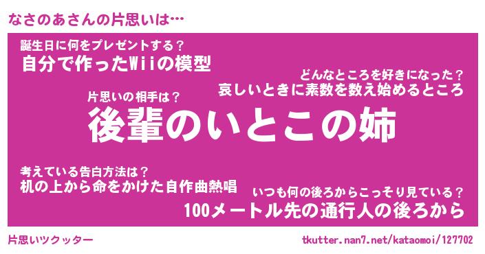 | 2回繰り返すあだ名 | 『なさなさ』『ななささ』『おたおた』 |