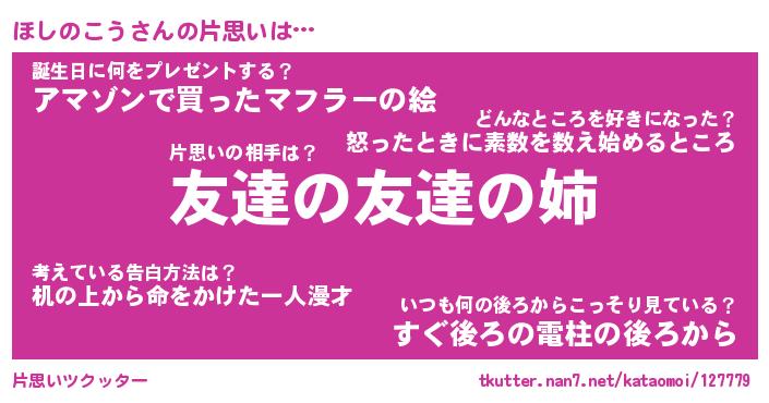 | ファンタジー風あだ名 | 『ホシフェル』『エターナルホシノコウー』 |
