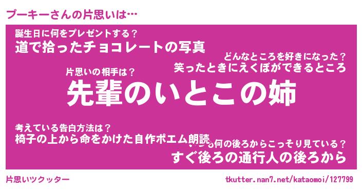 | 胡散臭い通販商品みたいなあだ名 | 『モテモテ間違いなし水晶球…その名も「プーキー」』 |