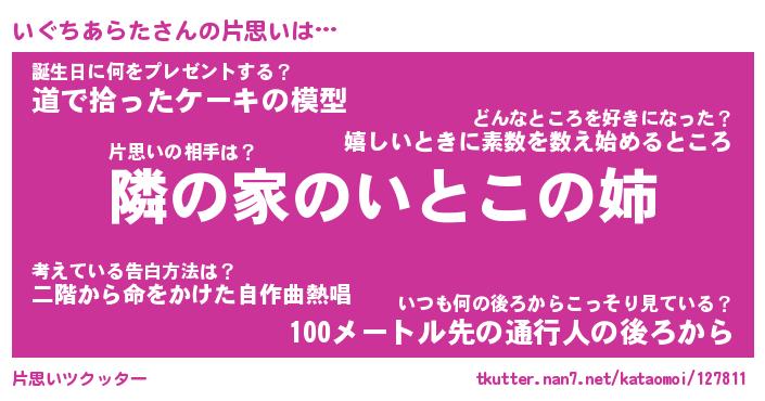 | ヘコむあだ名 | 『いぐにゅー』『牛乳』『いぐを』 |