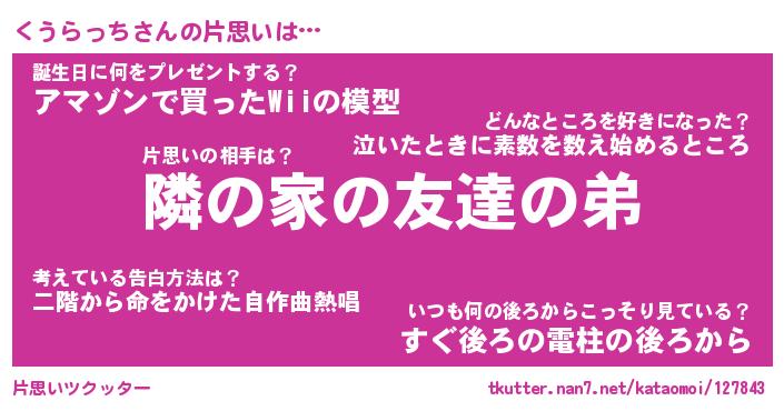 | ファンタジー風あだ名 | 『クウフェル』『エターナルクウラッチー』 |
