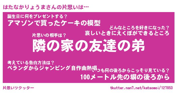 | 胡散臭い通販商品みたいなあだ名 | 『モテモテ間違いなし霊験あらたかなお札…その名も「はたなかりょうま」』 |