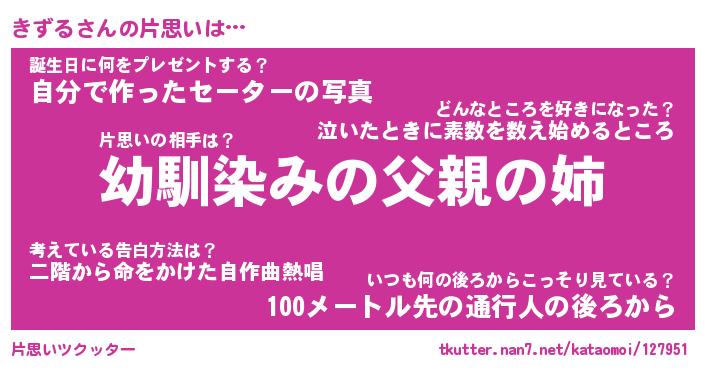 | ヘコむあだ名 | 『きずにゅー』『つくし』『きずを』 |