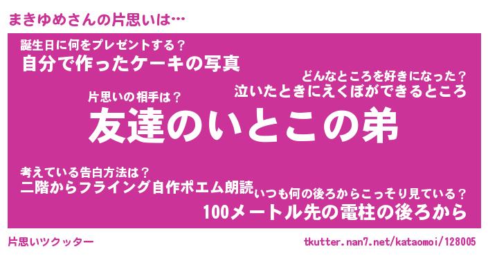 | ヘコむあだ名 | 『まきもー』『つくし』『まきお』 |