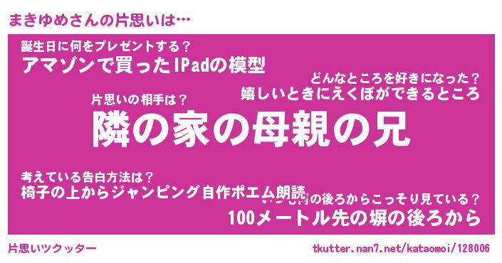 | 恥ずかしいあだ名 | 『プリティーまきゆめ』『まきっちょ』 |