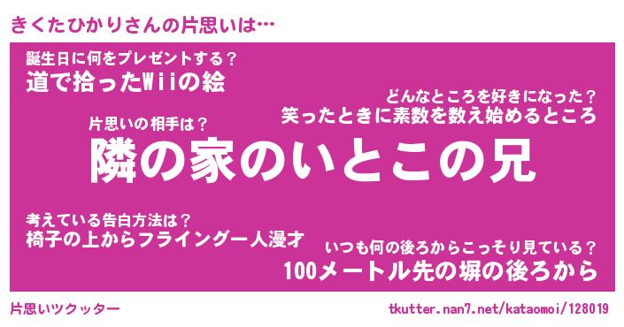 | 胡散臭い通販商品みたいなあだ名 | 『モテモテ間違いなし水晶球…その名も「きくたひかり」』 |