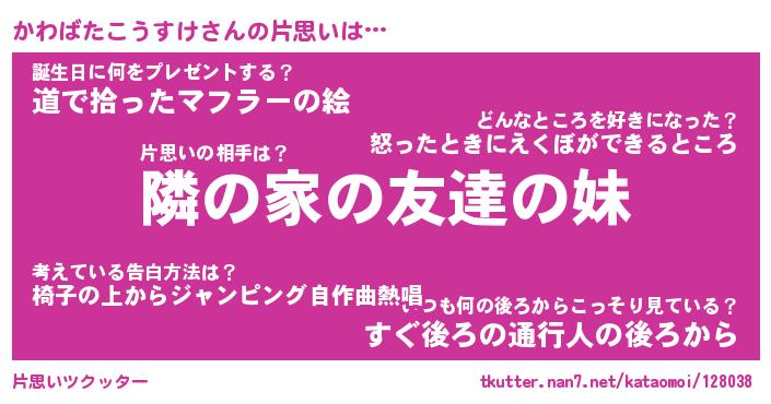 | 肩書あだ名 | 『かわばたこうすけ御曹司』 |