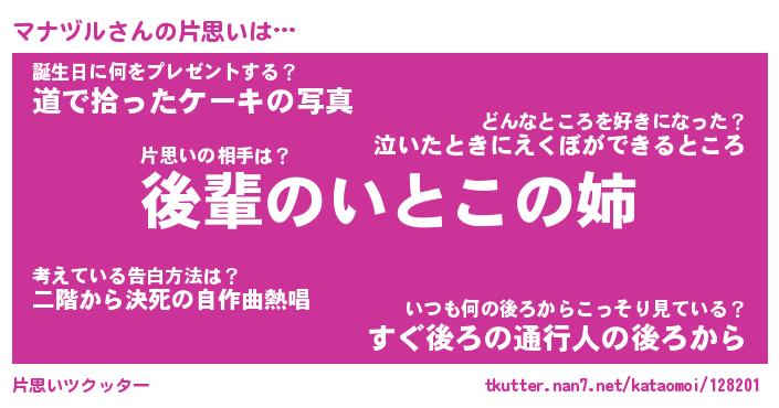 | ファンタジー風あだ名 | 『マナフェル』『エターナルマナヅルー』 |