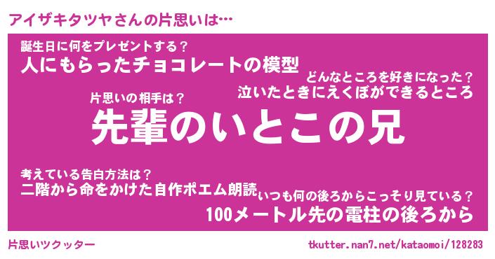 | 胡散臭い通販商品みたいなあだ名 | 『モテモテ間違いなし水晶球…その名も「アイザキタツヤ」』 |