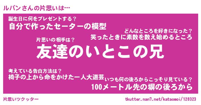 | ヘコむあだ名 | 『ルパにゅー』『豆乳』『ルパっ子』 |