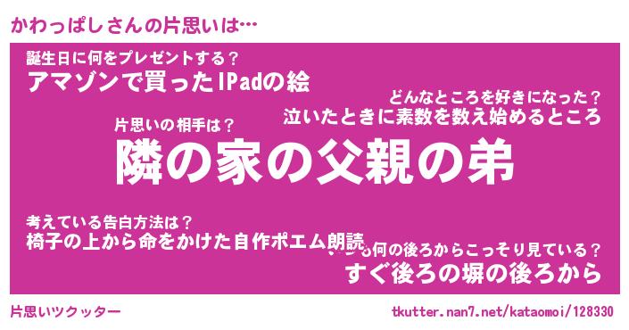 | 胡散臭い通販商品みたいなあだ名 | 『モテモテ間違いなし水晶球…その名も「かわっぱし」』 |