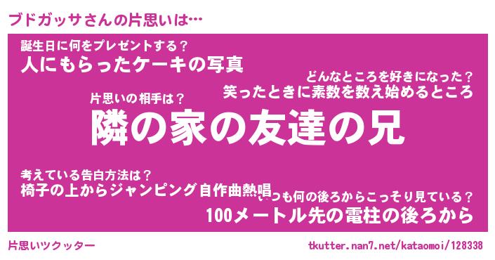 | ポケモン風あだ名 | 『ブドチュウ』『ブドガダネ』 |
