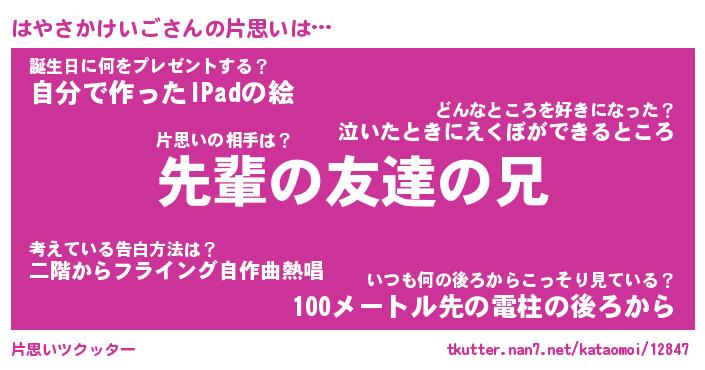 | 女子向けラノベタイトル風あだ名 | 『はやさかけいご姫と円卓の騎士』 |