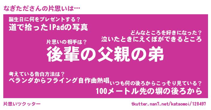 | ヘコむあだ名 | 『なぎにゅー』『豆乳』『なぎっ子』 |