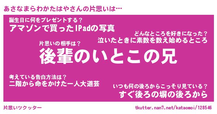 | 意味不明あだ名 | 『ペロリンあさなまらわかたはや』 |