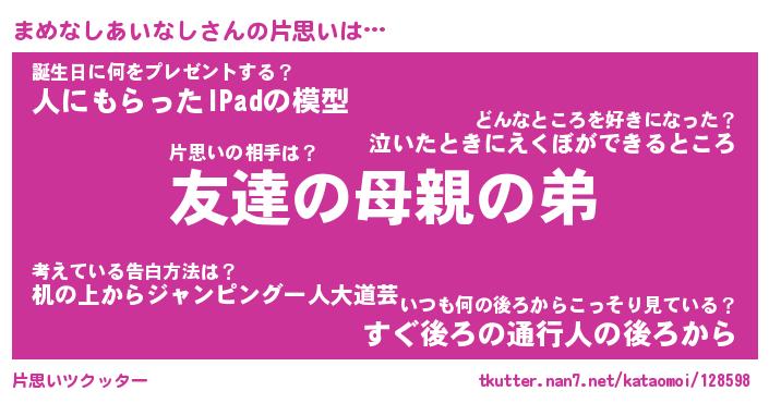 | 胡散臭い通販商品みたいなあだ名 | 『億万長者になれるブレスレット…その名も「まめなしあいなし」』 |